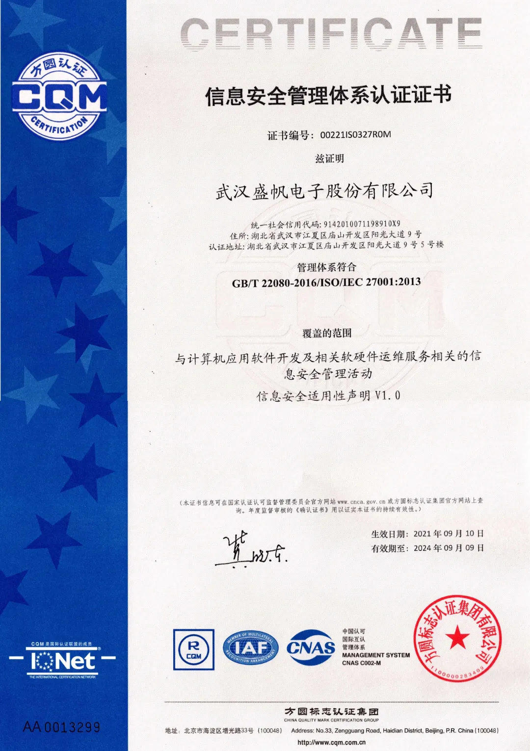 克(ke)日(ri),武汉市盛帆(fan)电(dian)子(zi)设备股分无限升♎级(ji)工司顺遂经过程序ISO27001测试,宣布拿得(de)数(shu)据恬淡办(ban)好(hao)安全体系身(shen)份验证职业技能证书。这场身(shen)份验证主要包括了与(yu)斤(jin)斤(jin)计(ji)较机运用电(dian)脑软件抢(qiang)占及(ji)相干(gan)软和件维护办(ban)事(shi)人(ren)相干(gan)的ജ数(shu)据恬淡办(ban)好(hao)勾当等开(kai)门(men)的业务板(ban)块。