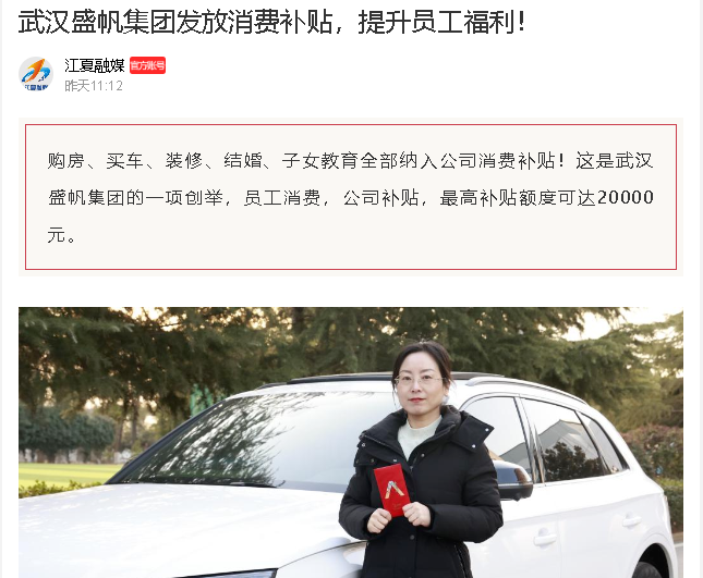 选房、购买新车、装修设计、结婚、子孙后代教全数归于企业浪费补帖,那就是杭州盛帆小团体还推出的项标新立异来加入,更高补帖额多达2000元···